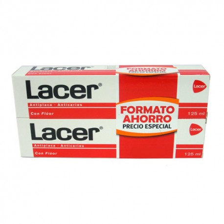 La Lacer Pasta Dental Duplo 125ml + 125ml ofrece acción anticaries, siendo un preventivo efectivo contra la formación de placa dental. Refuerza tanto el esmalte como la dentina, siendo idónea para la higiene bucal diaria.
